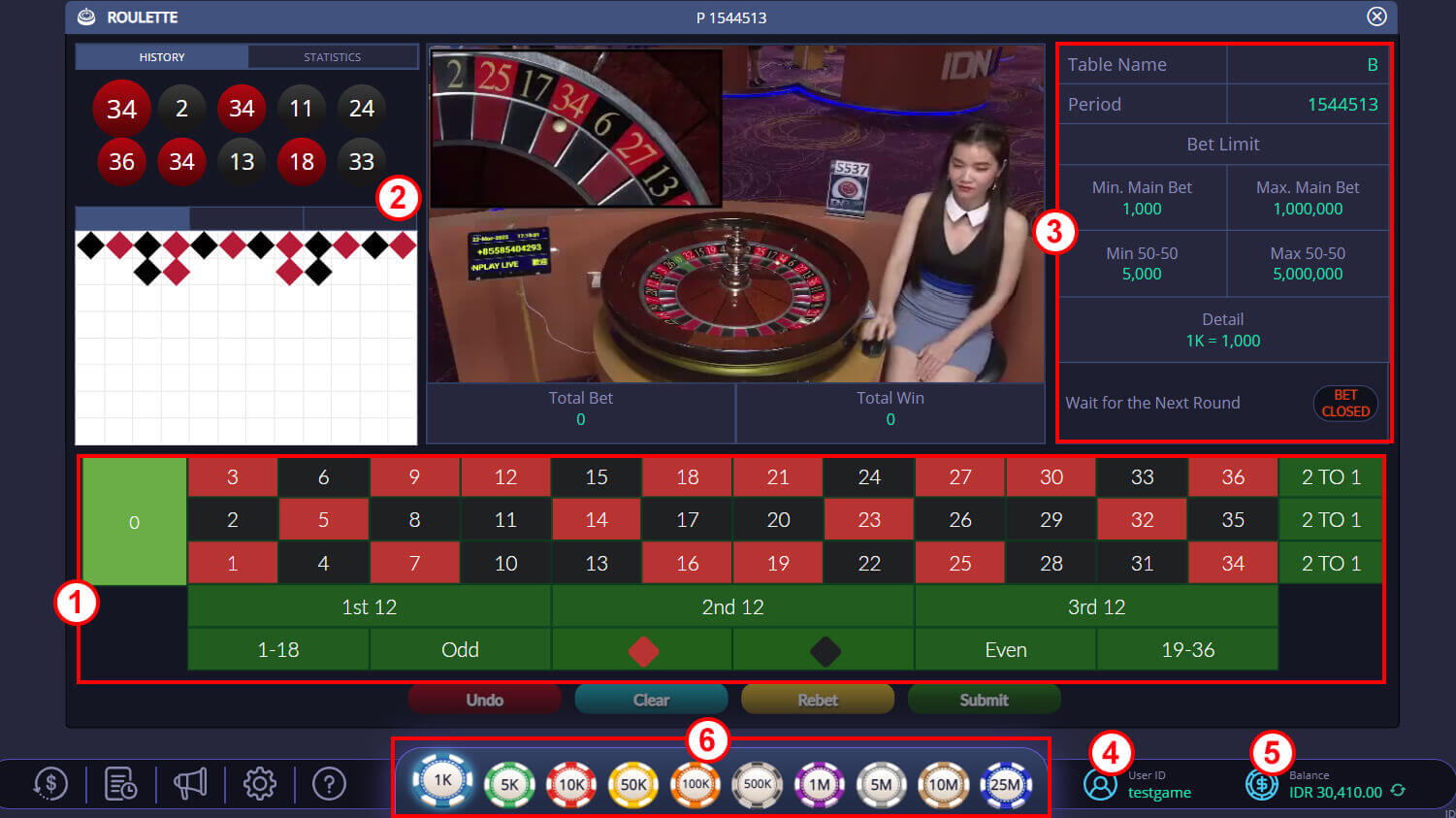 Result History : untuk melihat hasil permainan ronde-ronde sebelumnya
