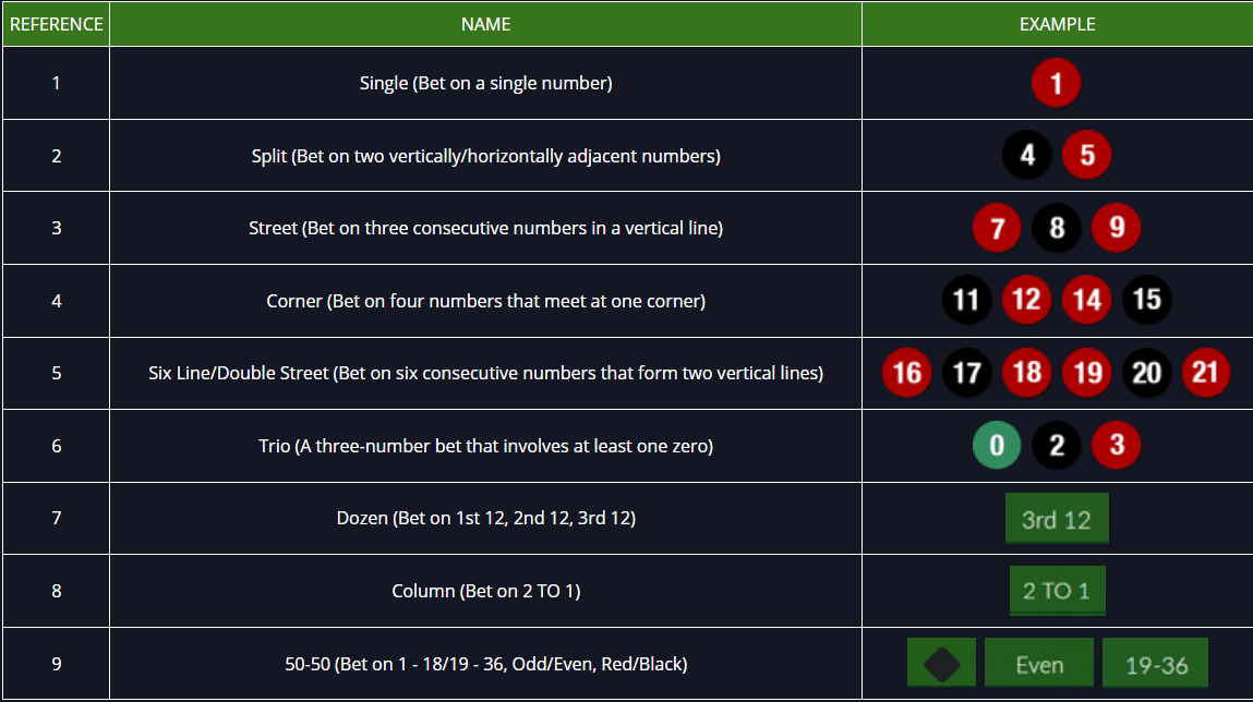 Jenis Taruhan Casino Roulette